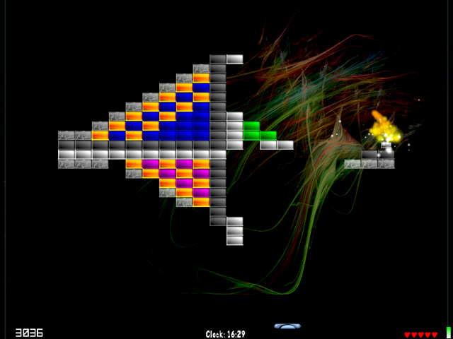 Voici Arkanoid classique avec une touche. Le but est simple, effacer les blocs à l'aide de votre plate-forme et les balles rebondissantes. Variété de bonus (mais attention certains sont également dangereux). Près de 50 combinaisons de blocs qui sont choisis au hasard, de sorte que vous n'avez pas marre de rejouer les niveaux n'ai pas aimé le niveau? Démarrer un nouveau jeu ou être patient et continuer à jouer à travers et voir jusqu'où vous pouvez obtenir!