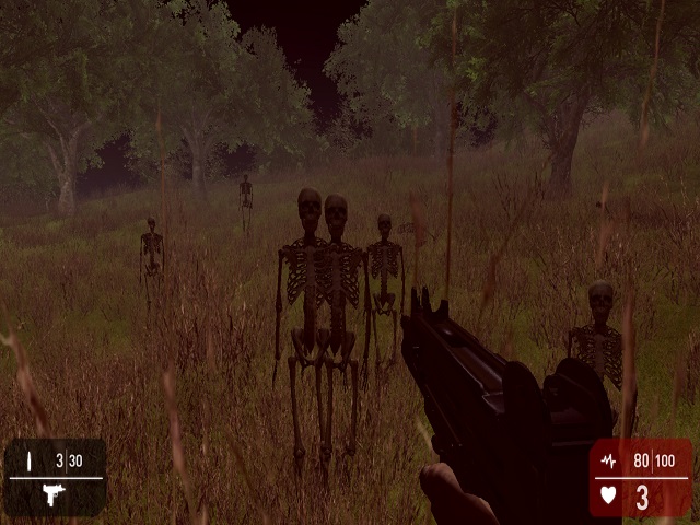 Vous êtes dans une forêt effrayante la nuit. Des hordes de squelettes maléfiques vous entourent. Ils ne veulent qu'une chose: vous tuer. Cherchez des armes, cachez-vous parmi les arbres, survivez. Battez des squelettes maléfiques et sortez de la forêt malheureuse. Bonne chance