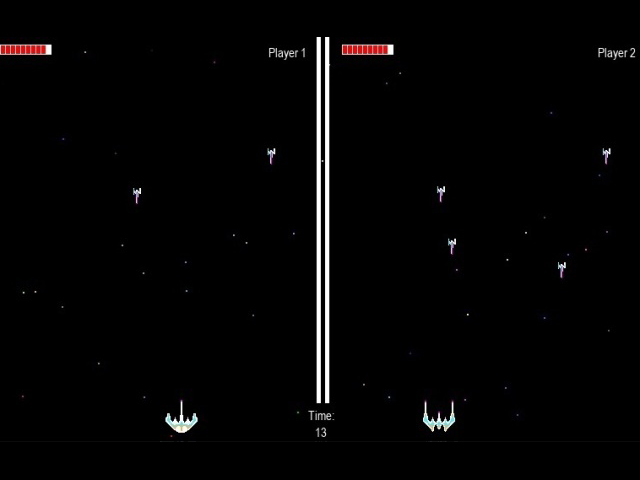 Le but du jeu est de tenir plus longtemps que l'adversaire, en combattant les navires ennemis. Contrôlez les joueurs à gauche et à droite et tirez sur le bouton haut (pour le deuxième joueur w, a, d). Il prend également en charge la gestion de deux manettes de jeu.