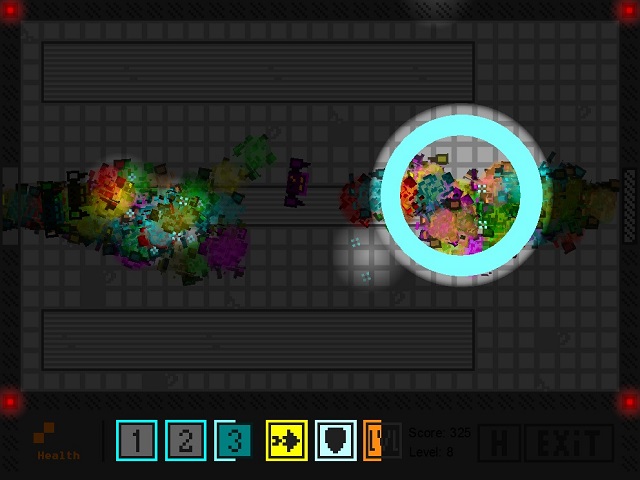 Dans ce jeu coloré, il ya une seule règle ... Le mieux votre objectif plus vous pouvez tirer. Dans votre arsenal, il ya 3 types d'armes, dont le premier est utilisé pour détruire l'ennemi. Il ne sera pas facile, mais avec lui, vous fera gagner plus de points. Le second est de disposer de robots ennemis et ce sera beaucoup plus facile, mais vous va marquer moins de points. Le troisième est le plus puissant pour la destruction de plusieurs objets simultanément. En plus des armes, vous aurez un bouclier et d'accélération des capacités, et si vous avez le temps de les utiliser, vous ne serez pas si vulnérable.