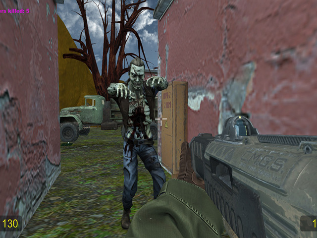 Un autre zombie a sauté de derrière une voiture. La bouche sinistrement ouverte n'augurait rien de bon. Un tir rapide de mon arme a projeté les zombies d'un demi-mètre en arrière. Ce zombie n'est plus dangereux. Immédiatement, j'ai ressenti une vive douleur des dents d'un autre zombie, se faufilant derrière.