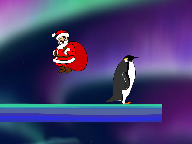 Pe pinguini Crăciun de noapte mușcat accidental prin punga de Moș Crăciun. Acum, Mos Craciun a colecta cadouri și dă-le sub copac până la sfârșitul lui Crăciun.