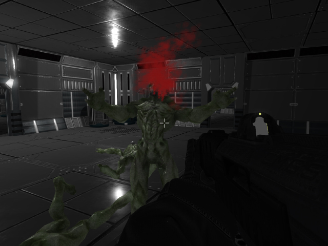 Stellar Base Defense ist ein Shooter, bei dem Sie eine Weltraumbasis vor der Invasion von Außerirdischen schützen müssen. Ihr Ziel ist es, den Angriff des Feindes so lange wie möglich einzudämmen, um auf das Eintreffen von Verstärkungen zu warten. Waffenladungen erholen sich im Laufe der Zeit, aber nicht so schnell, wie neue Monster eintreffen. Sie müssen also genau schießen.